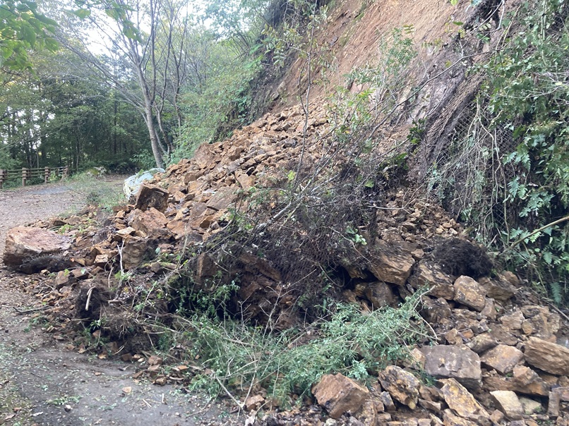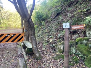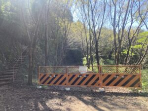管理道の一部通行止め立ち入り禁止のお知らせです。 がけ崩れのため管理道一部通行止め立ち入り禁止としております。地点8から遊歩道を登って頂上へ向かってください。 峠トイレへは、直接いけませんので頂上から降りて行ってください。 ご迷惑をおかけいたします。ご理解ご協力お願いします。